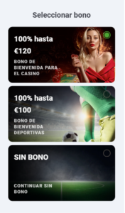 | Bono de bienvenida | 100% hasta 120 € + 120 giros gratis |